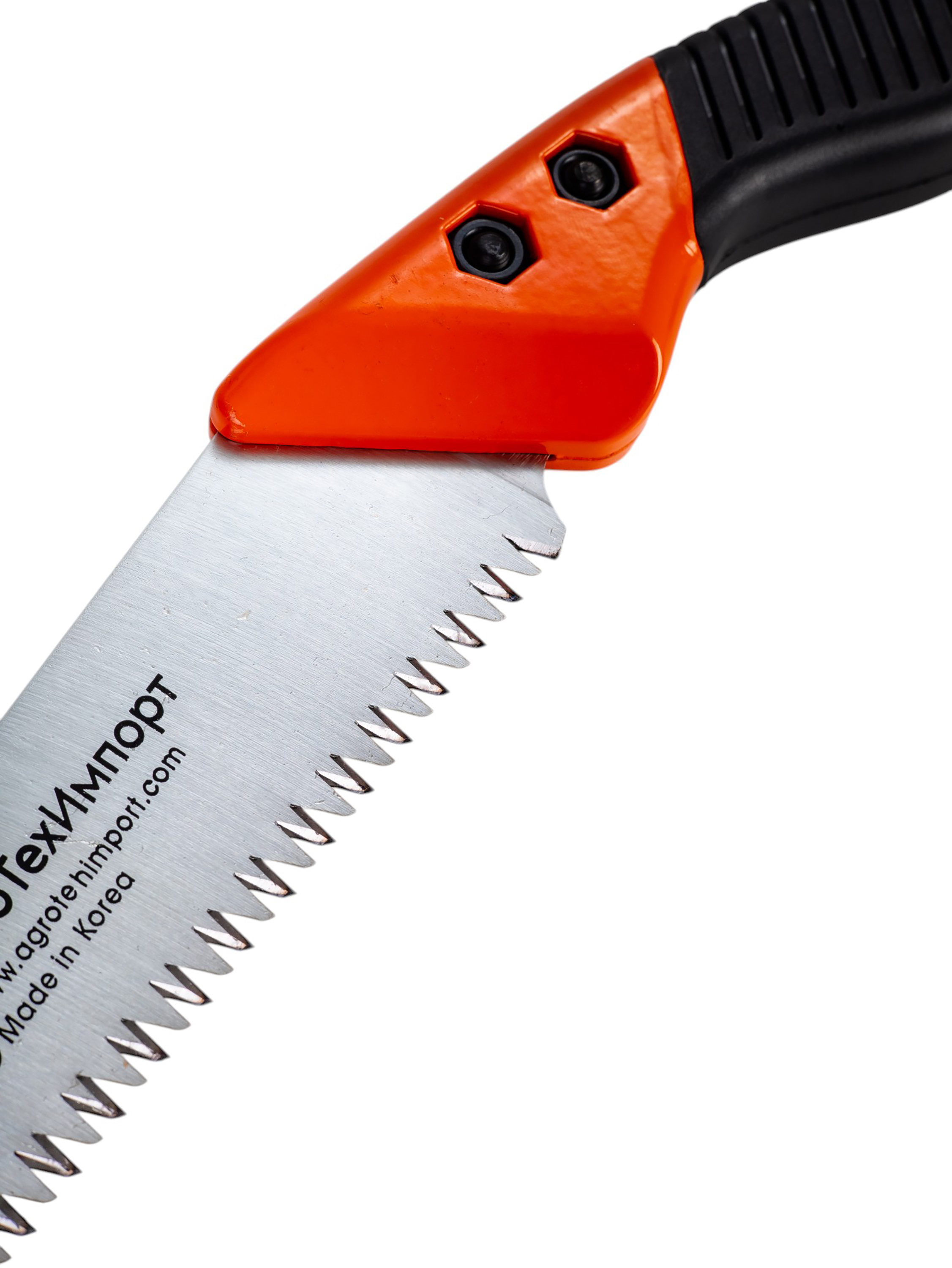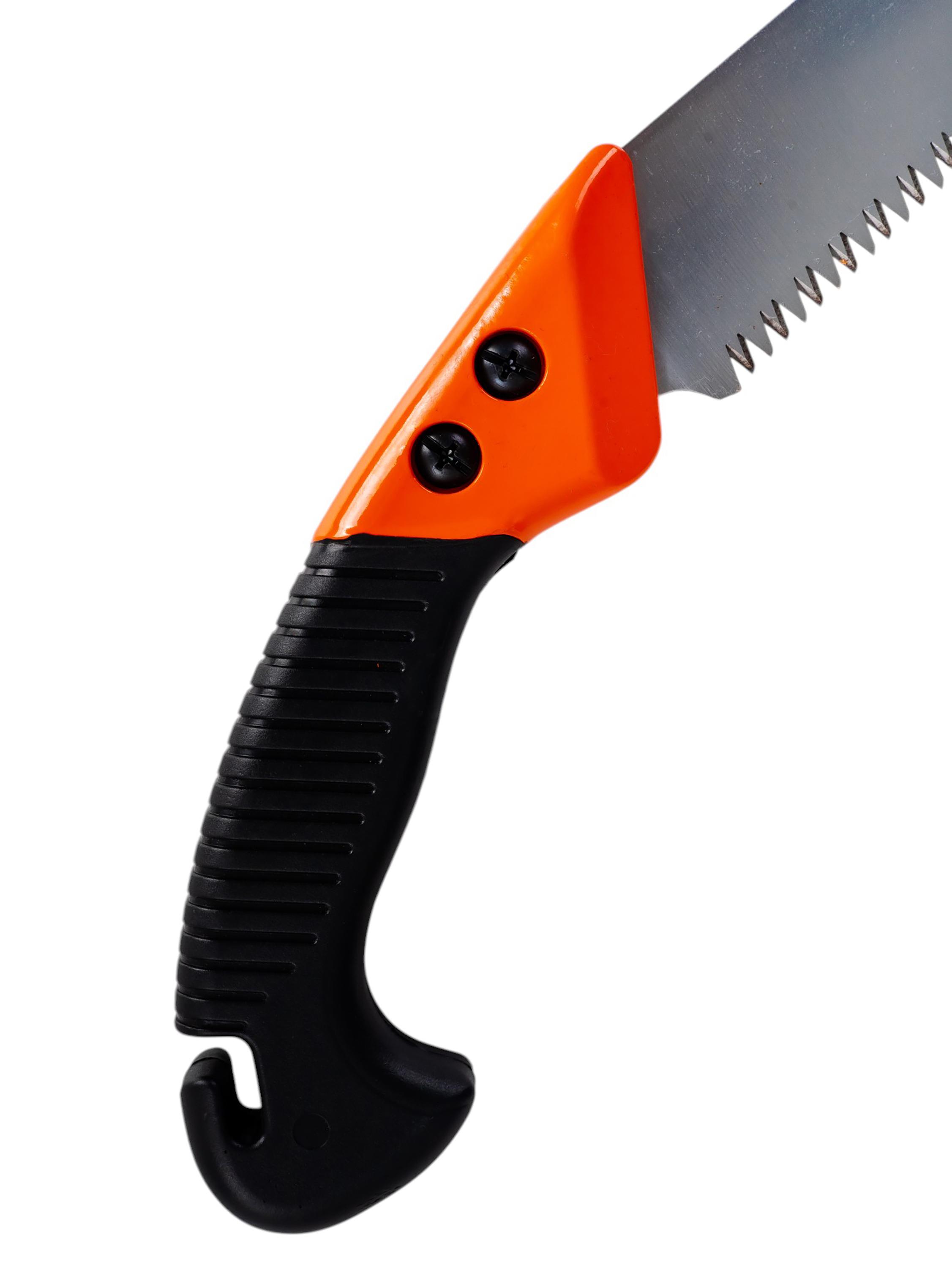 Пила (ножовка садовая) оснащена ножнами с поясным креплением, инструмент абсолютно безопасен во время транспортировки и хранения, а также ношения на поясе.